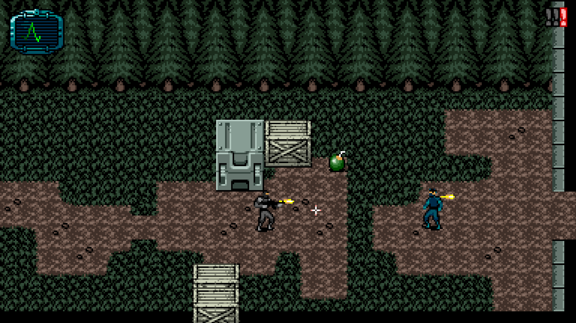 phenomenal metal gear-style stealth game, beautiful pixel art, awesome music, and that secret boss was so much fun to fight, my only issue was that having the reticle for aiming lock itself in a radius around the character felt a little difficult to get used to