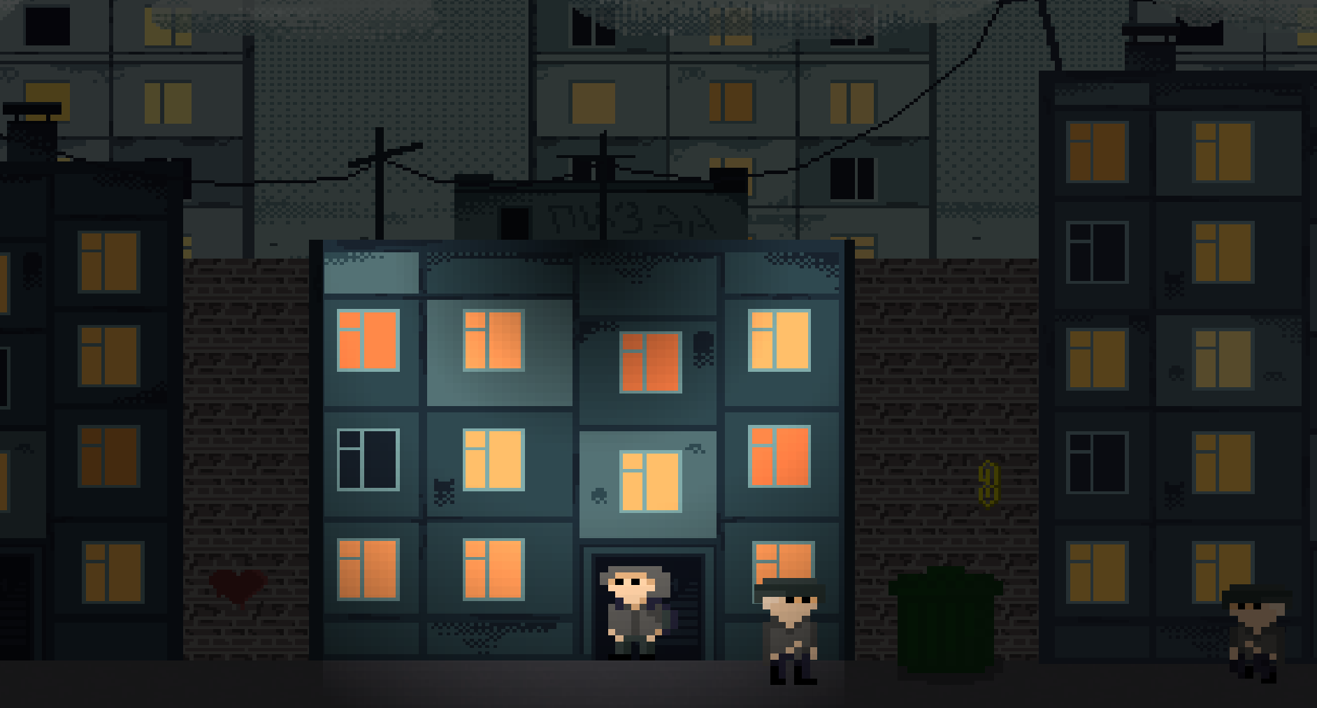 In this short game, you play as a teenager who is coming home from school, you had extra classes,s and you are feeling tired. You know you shouldn't take the shortcut through the bum alley, but you risk it for the biscuit.