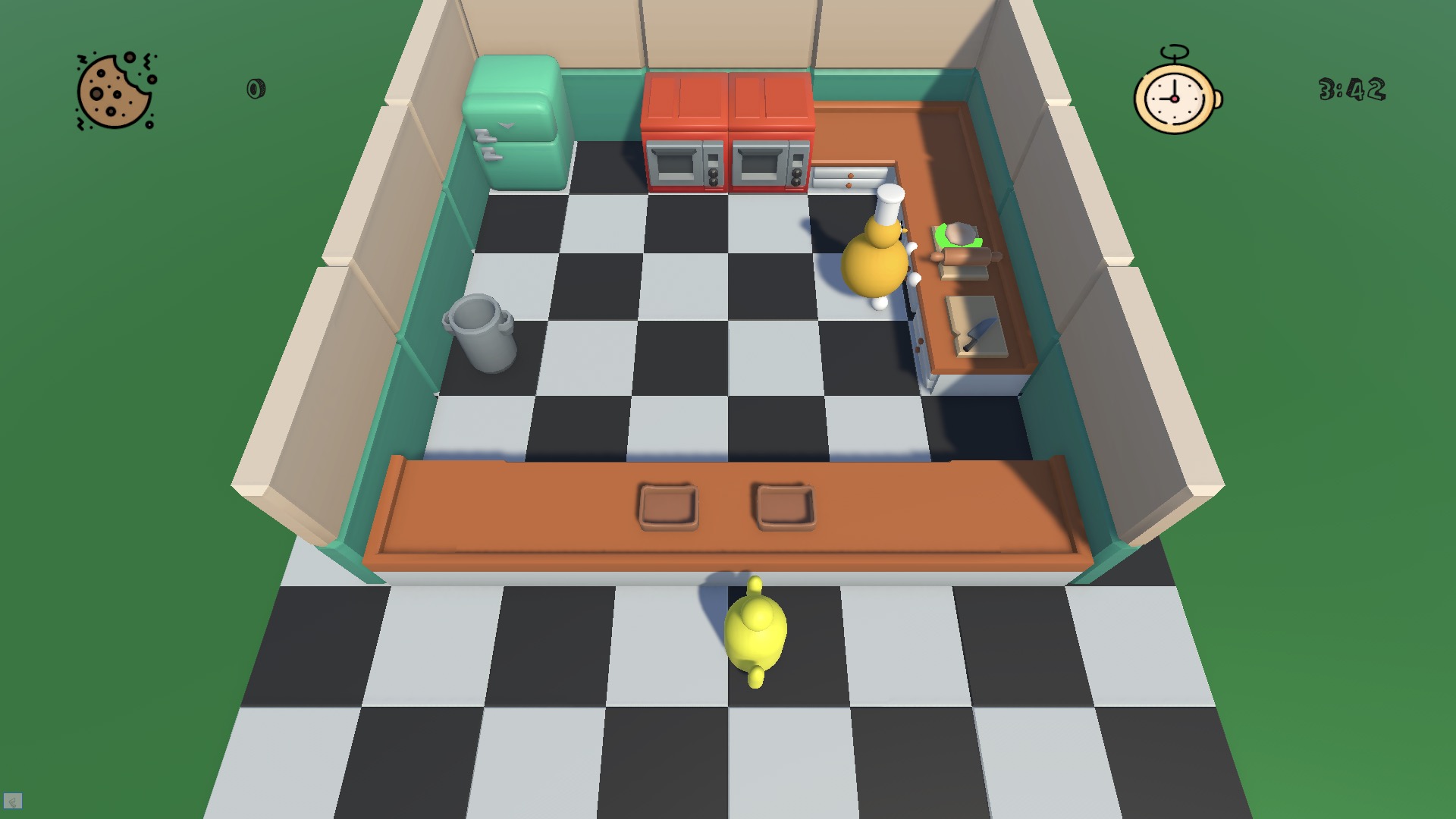 An OverCooked copy but a lot less chaotic(Probably cause you’re not screaming at your friends for doing everything wrong :P) I love the risk it twist, and how the cookies just explode in your face on pressing K I would have loved a bit of variation on different kinds of cookies you could have baked or maybe decorated, but overall a fun game :)
