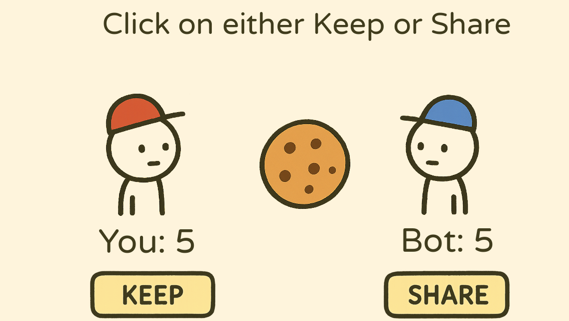 Interesting game! Couldn´t figure out bot´s trust level, so ended up kinda randomly keeping and sharing until I won. It was fun!