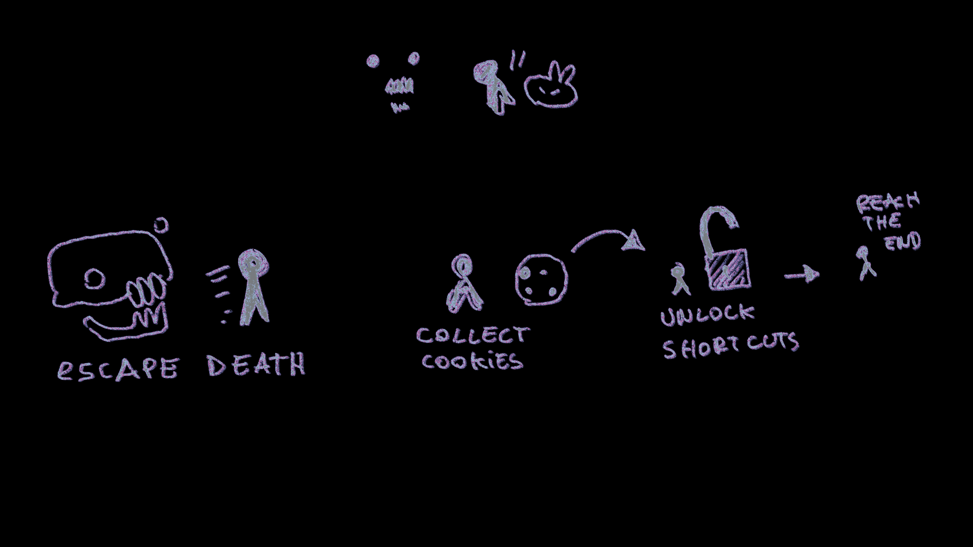 The player mus go out of their way to collect literal cookies, wich spawn more nemies but create also create shortcuts for the player to take