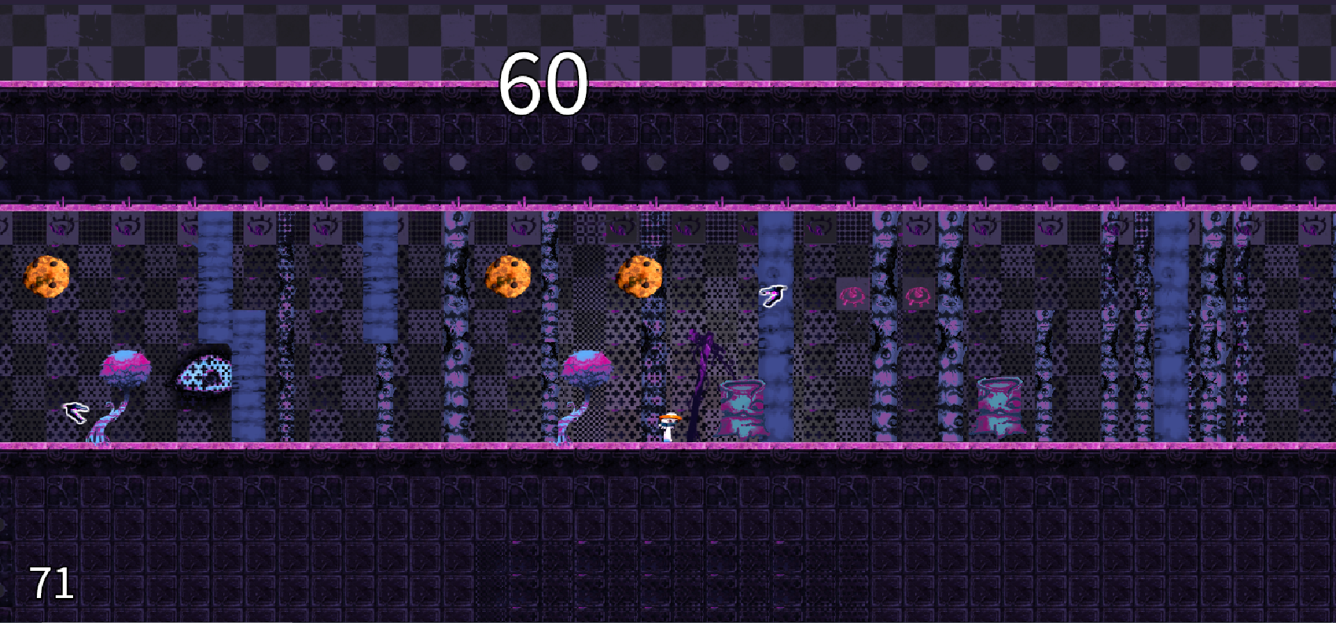 Strange and psychedelic art style, a bit unusual, but it's quite attractive in some strange, grotesque way, The gameplay reminds me of the level in Celeste where the hotel manager is constantly chasing you, which even here is quite fun. I think the platforming controls are a bit floaty yet stiff, and it felt really heavy that the player character jumps so lot that it doesn't seem to match his/her movement speed. I quite like the enemies in the game, but it would be better if there were some indication of what bad things they would do if they catch you. It felt like I got hit a lot, but doesn't seem to do anything, yet one of them just instakills you and sends you back to the beginning.