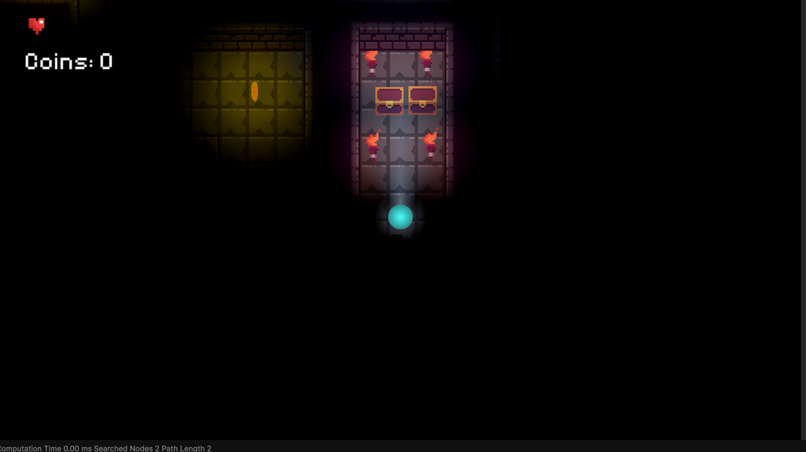 I had two main thoughts while playing the game. The first one is that it could be good to add in some more visual variety within the maze, with some elements (even things like painted arrows) put in place to help guide the player to the exit. Since the maze is quite large, the visual variety may also help different areas of the map feel distinct from each other, which could be a type of reward for exploring in and of itself. The other recommendation might be to shrink the size of the map overall. The randomness of the debuffs does add a tense / risky atmosphere to the game, but along with that comes the risk of the player feeling like they had a bit of a cheap death. That isn't too bad if they die close to the beginning, but if they need to trek very far back to get their gold, it might feel a little more tedious to die to three mimics in a row or something like that.