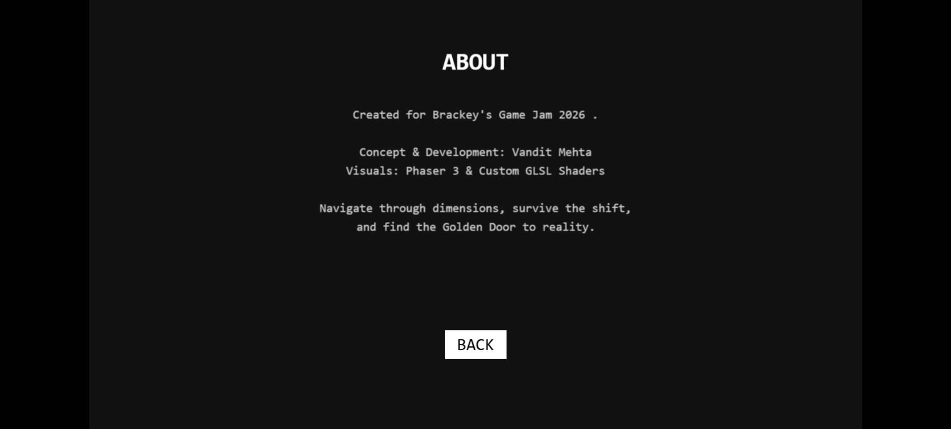 This game is a story of escape of a multidimensional traveler who gets stuck in a chaotic dimensional shift where he gets teleported to strange dimensions.