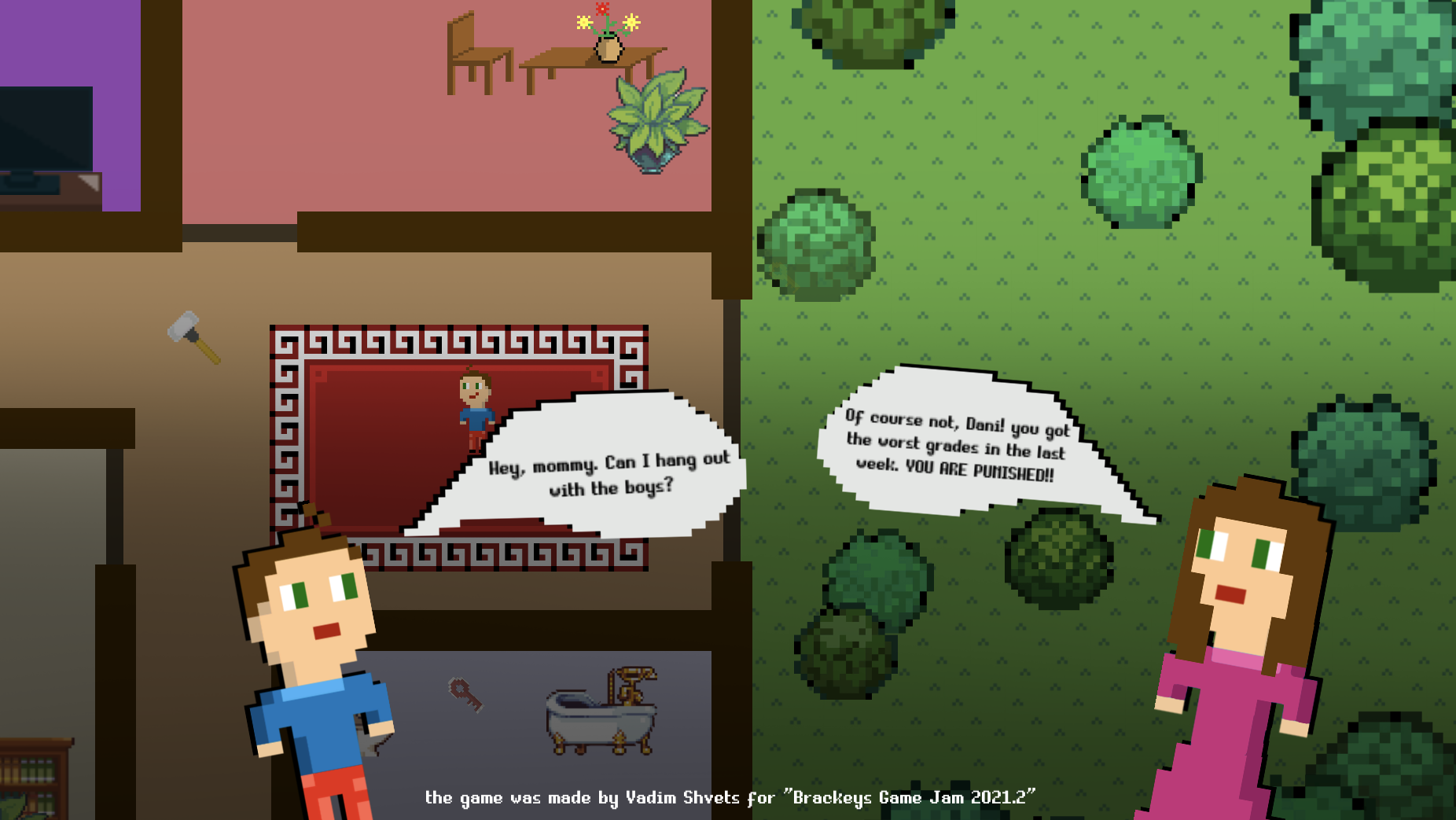 the little guy, who was punished by his mother and closed the house, finds a huge sledgehammer and blows the house to smithereens. because that鈥檚 the only way he can find all 5 keys to get out.