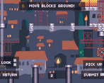 This was a really cool idea and I was happy to see that people weren’t griefing the place too badly. Having players move the blocks above them was a smart choice to avoid that. The art and sound and music are really nice, I really like the look and feel of the game, even though some of the scene background kind of clashed with the foreground and made it a bit disorienting. I will say that I wasn’t a big fan of the controls themselves. I liked pieces of it and there were times I was having a lot of fun, but a lot of the time I was also frustrated by my lack of ability to control the character or by bouncing off the corners of a block and missing the jump. It was still a nice enough experience overall that I wanted to keep going as far as I could. I managed to get as far as the top of the library.