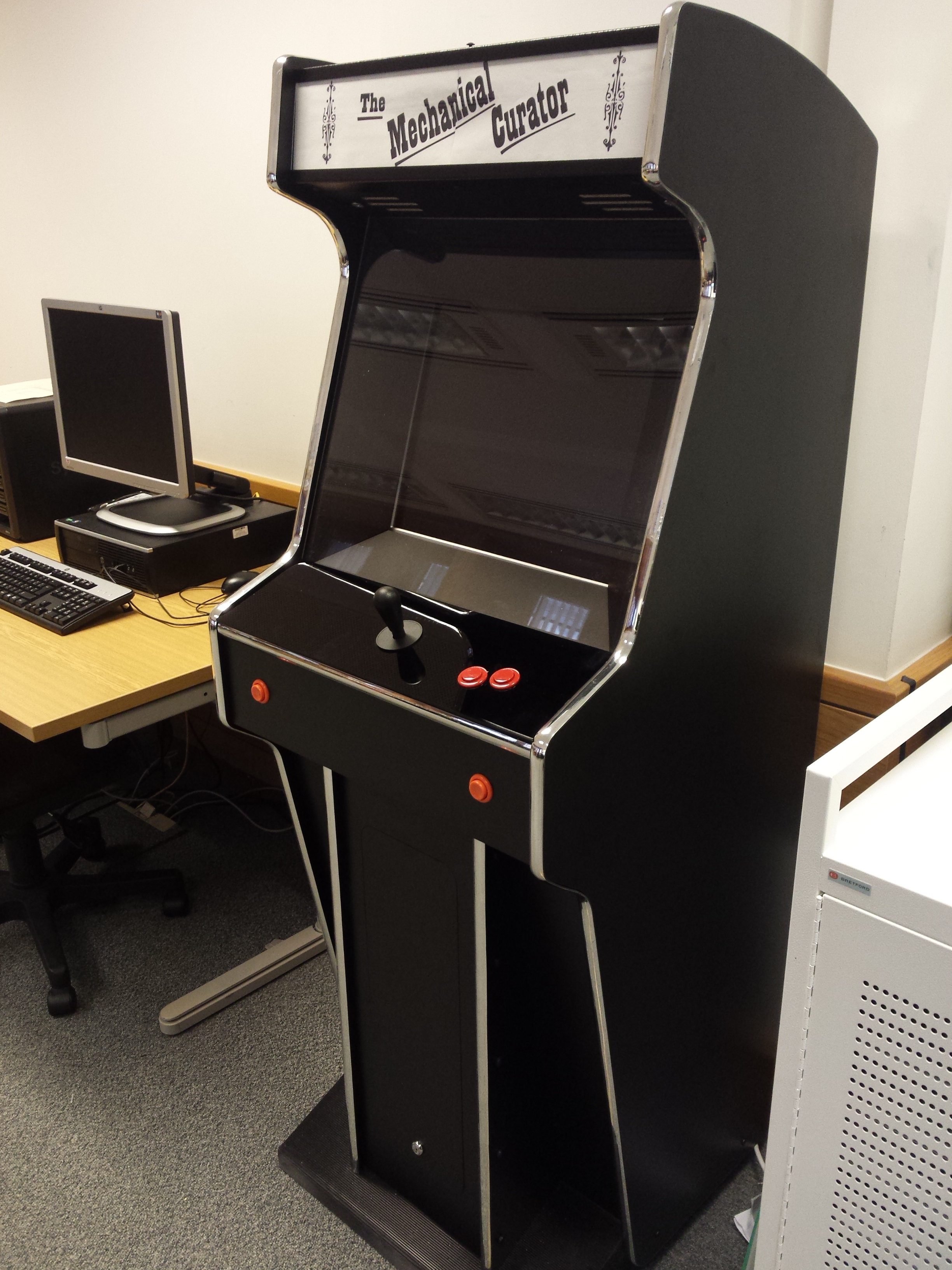 The purpose is to provide a large, installable unit that is tough and rugged, and that the general public can interact with. The joystick and two buttons are a constraint, intended to encourage more casual applications and use. Can a machine that looks like it has come from the 1980s, help with crowdsourcing applications? Are there any games that can both run with these constraints AND provide data about cultural collections?
