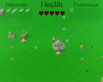 Love the way he walks and how his mouth "noms". I was able to walk off screen in the upper left corner of the first level and in the second level Collected all the creatures and one of the poisonous creatures and didn't advance. I loved the concept and your execution was great. What a fun game!