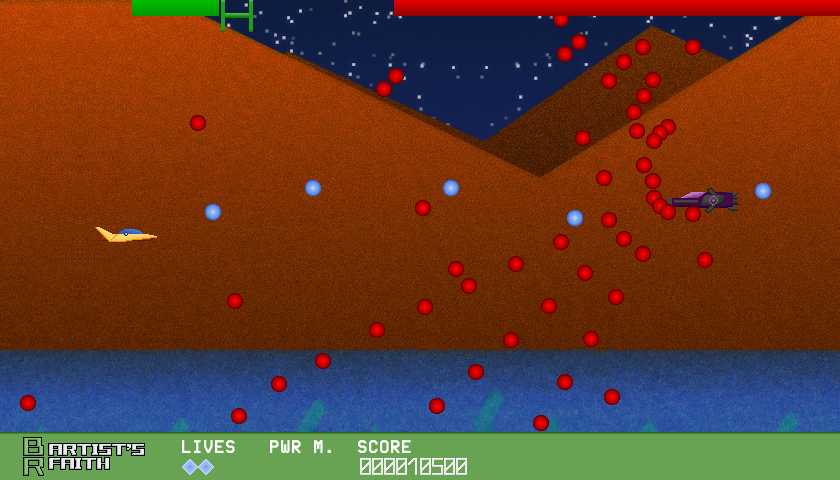 Really nice art, polished menus, and scene transitions! The enemy bullet patterns were nice, but I would appreciate more audio and visual feedback when bullets land. Especially with the first boss, I couldn't tell if I was even damaging it. But great start.