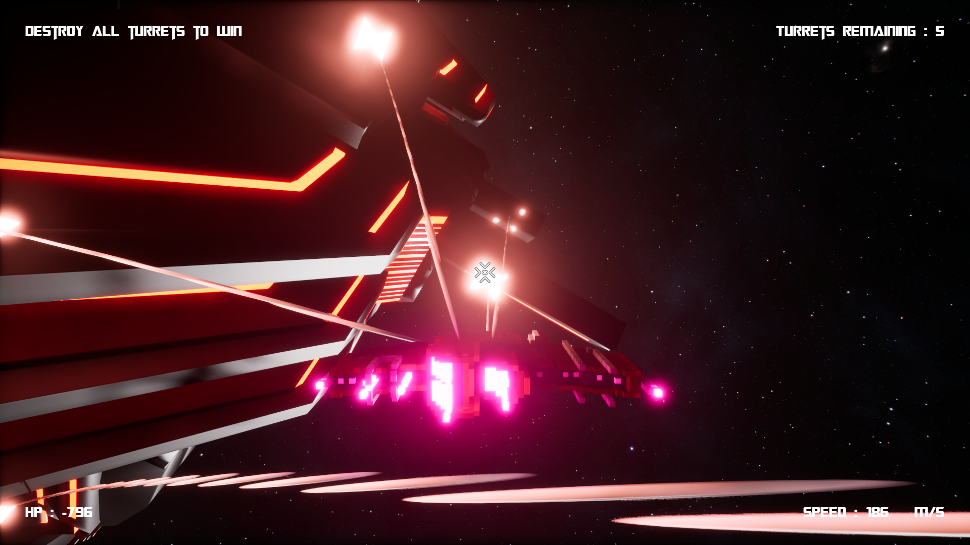 The game looks and the theme are top-notch, but it's so hard! I think I destroyed the turrets by crashing into them and not by shooting XD