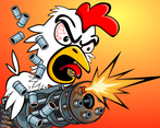 A chicken with a machine gun goes bam bam bam💥💥💥