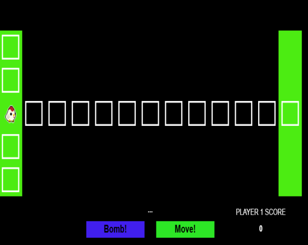 I didn't understand what the bomb button does. Also pressing the 'Move!' button before the countdown finishes sends the chicken out of the screen and you can only give up. Better change it to start straight away sending the countdown to zero.