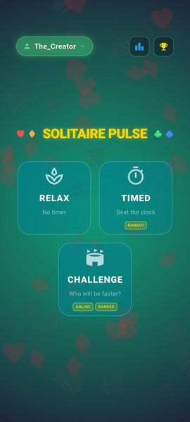 🃏 SOLITARE PULSE: Feel the Beat of the Cards! ⚡ Forget everything you know about slow, dusty card games. Solitare Pulse takes the classic patience experience and injects it with pure adrenaline, multiplayer competition, and sleek moder...