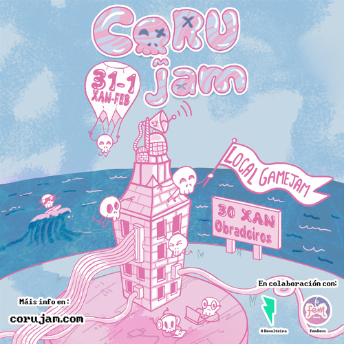 Páxina de entregas da CoruJam 2a edición celebrada no espazo de A Revolteira na cidade de A Coruña os días 31 de Xaneiro e 1 de Febreiro de 2026.