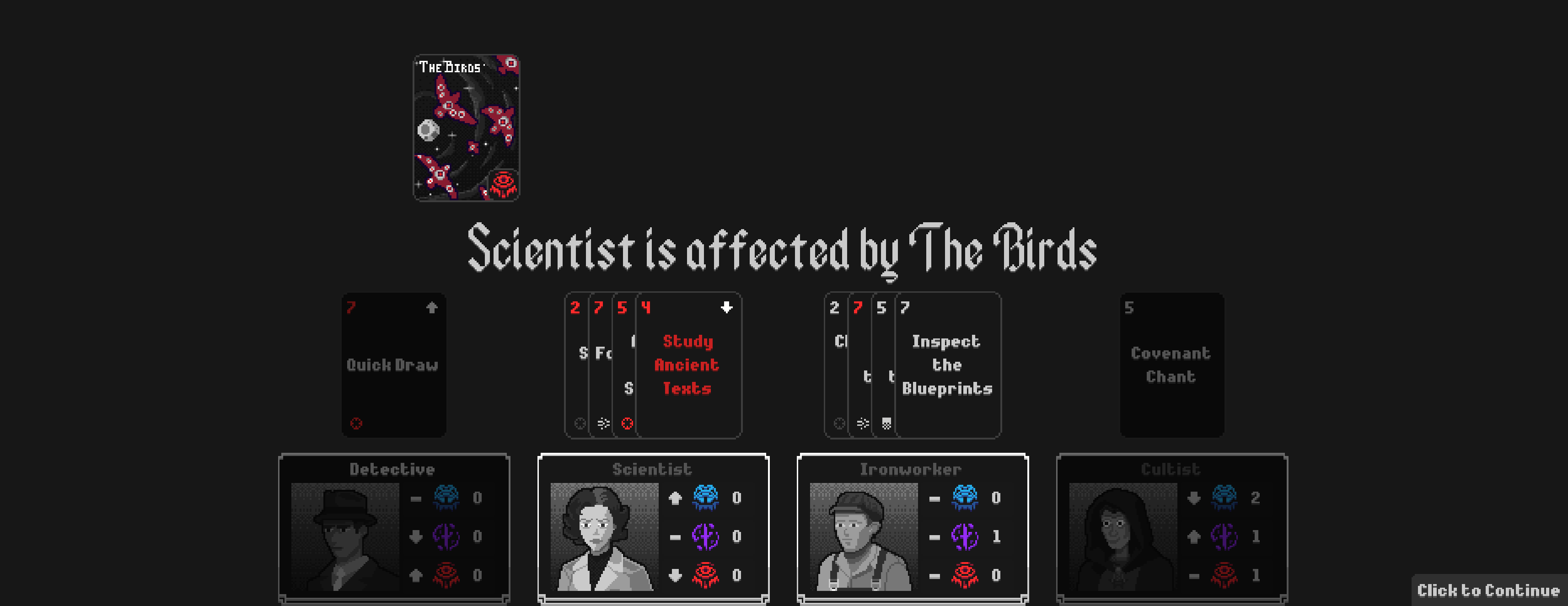 Not really a criticism so much as a suggestion if you plan to continue development: I like the cards that add more longer term strategy to the gameplay, such as the "analyze the evidence" card. I think adding more cards that would synergize together in various ways and that could create more strategic opportunities would really spice up the gameplay.