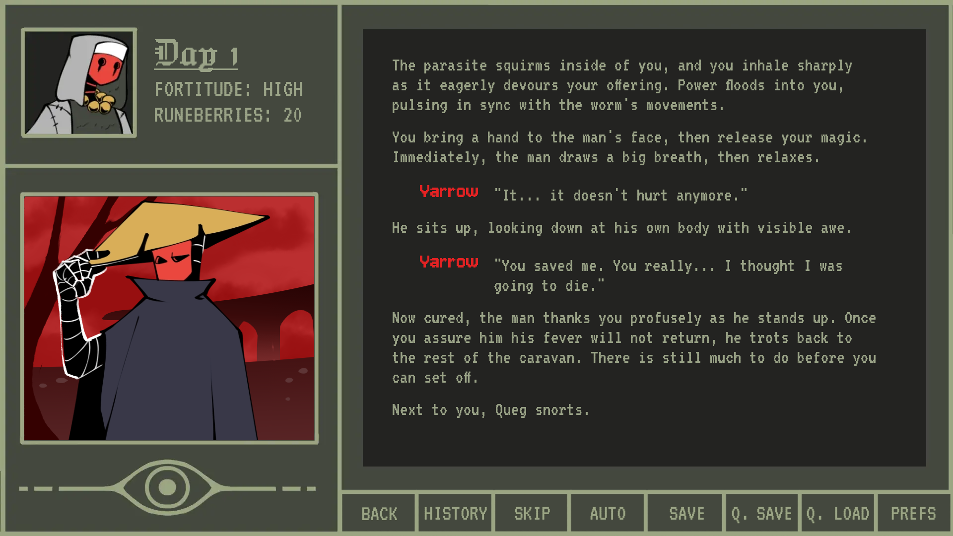 Wow I was completely overtaken by the presentation! I see your team used renpy just like me but man I love this so much I feel you got inspiration from stuff like Roadwarden, I might be wrong, but this is really creative in its own right and makes the story so immersive with the amazing artwork and well written adventure.