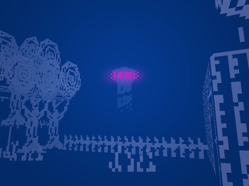 I loved the atmosphere so much, the beautiful pixel artwork and that unnerving but almost peaceful ambience come together to make such an otherworldly vibe. I like how you used an incomprehensible language too! The use of bright pink against the calm blues was really pretty too. Fun to play and eye candy too!