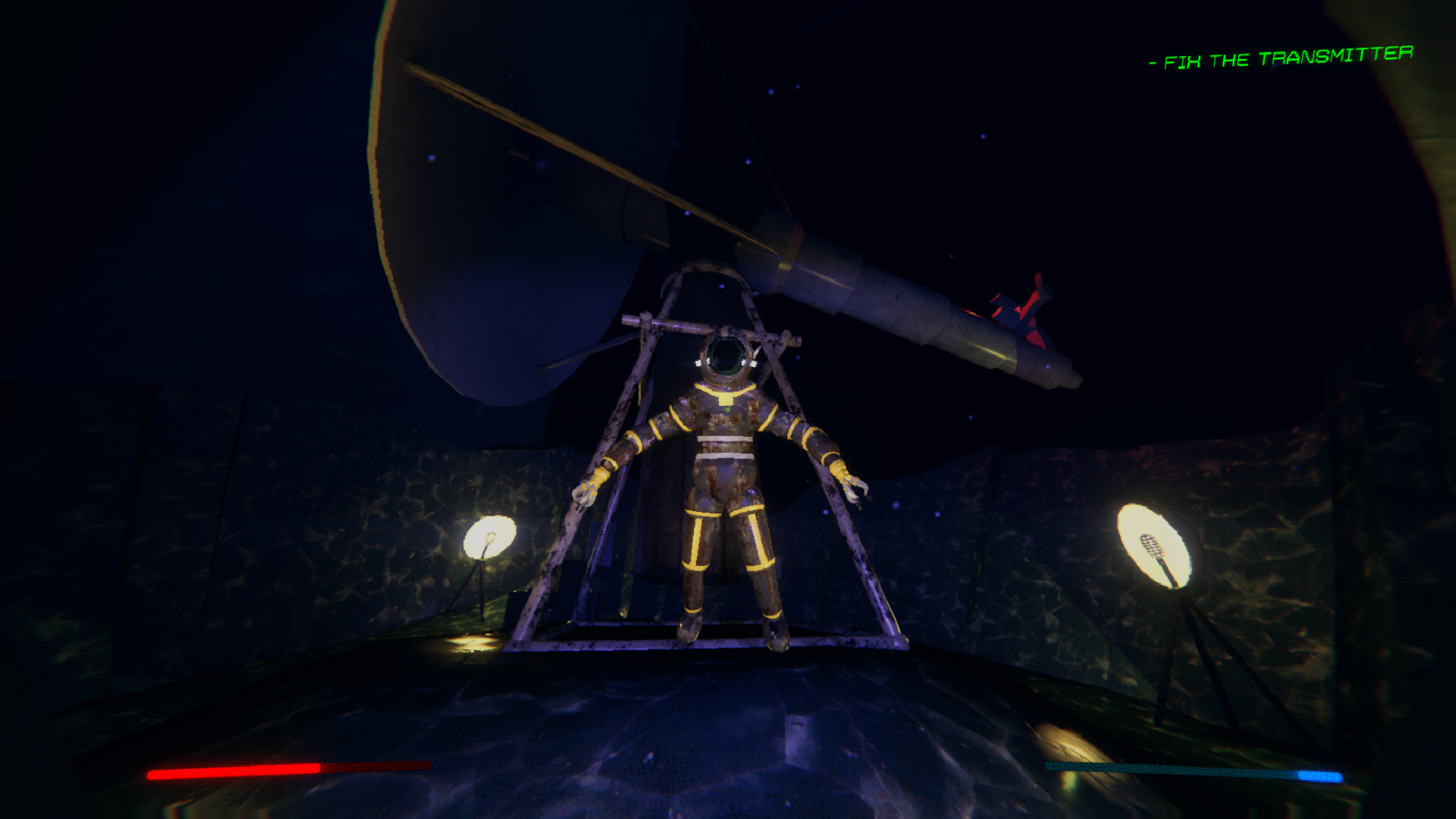 Unfortunately I did encounter several annoying bugs ><. I get 2 black screens (that would change color as I move the camera) while I bumped randomly on a bench and a chair, which force me to restart. And I was stuck at the "find oxygen goal" even when I did manage to get my blue bar full, and then I couldn't equip the wrench to break the padlock :'(