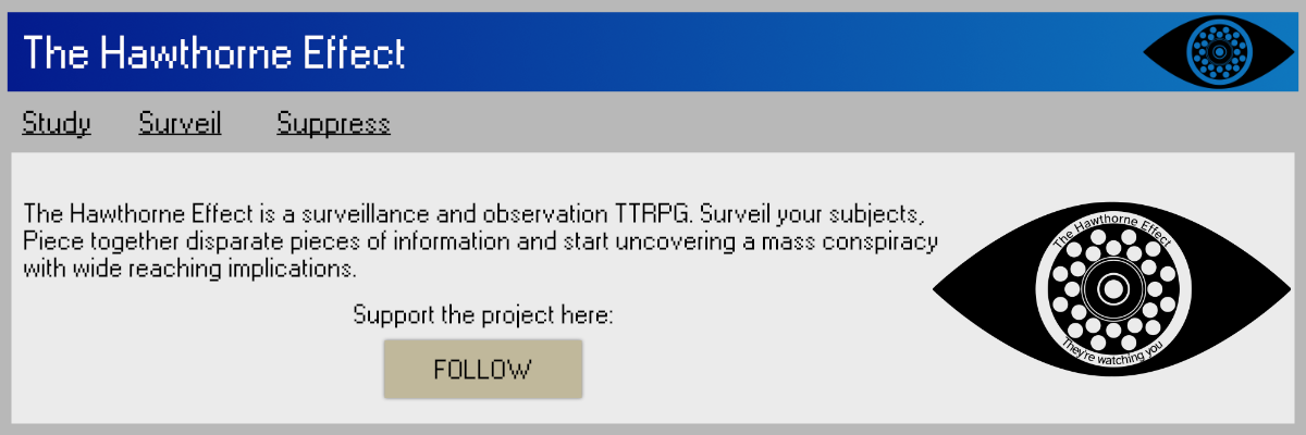 The Crafted in a Shell SRD Jam 2: Back in The Shell is being hosted in connection to The Hawthorne Effect kickstarter. The Hawthorne Effect is a surveillance and observation TTRPG with a 90s creepy tech aesthetic. The Hawthorne Effect uses the Crafted in a Shell SRD and is based on Be Still, Archivist.