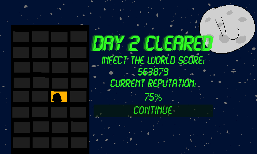 This game dives into the 'parasitic' relationship of people, leeching off of others they live with. You play as someone doing the bare minimum to not get kicked out of their dorm, while actively leeching off of your dormmates. There's also a little infection game that is played.