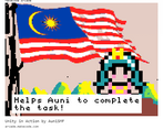 "The theme ‘Unity’ is shown through three different race in the characters — Auni, Ah Feng, and Raju — who must work together using their unique abilities to overcome obstacles, defeat enemies, and find the key to unlock the treasure box. Only with teamwork and cooperation can they succeed in retrieving the Jalur Gemilang, symbolising national pride and unity.