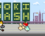 You control Doki running around in the city fighting off Dragoons. You defeat them, they give you exp, you level up, and rinse and repeat. A chain reaction of constantly spawning and constantly trying to level up to beat them.