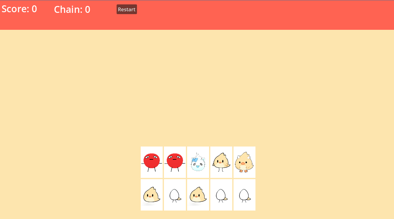 the game has a chainreaction mechanics where if identical cards matched side by side will create a reaction