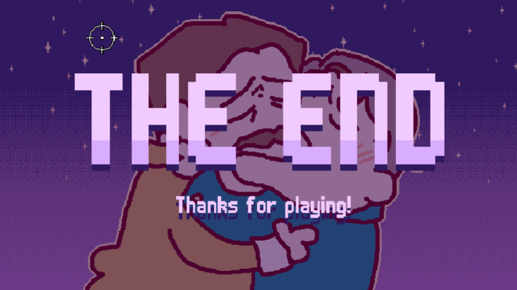 Amazing game. I enjoyed every part of it. The visuals are fantastic. The music and sound design fit perfectly. Polished, fun gameplay that fits with the theme well. A story that fits perfectly with the theme and is funny and well written. Cool boss fights. yaoi. Absolutely knocked it out of the park. Submitted just in time too I just noticed lol. Well done you two!!