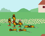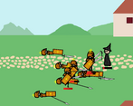 - This is game about killing your opponents in a quite unexpected way - by using them against each other. You are a wiz... magician who wants something from villagers... but the village is under attack of Roman legion and it needs your help - killing all the attackers (yes, just this very little service). So the magician walks among the attackers and they mindlessly follow you and try to stab you... and at that moment, you use your spells and suddenly, on tips of their spades lay their comrades. The game starts with a story that even somehow manages to convey personalities of characters (even without dubbing). The intro scene before the fight was first obstacle for me... I even managed to leave the screen by its edge, I thought I was expected to go further... but no, I was expected to go to the door in one of the buildings. The fight itself works well, but getting rid of the last enemy soldier was quite bland and the outro... was there any? Just a scene with text, but no dialogue, no followup... I can only hope the story was the last thing that was worked on. The fight with legion that goes mindlessly to you in a level that doesn't contain any obstacles or any other form of structure can get boring and you hope the game ends soon; also the last soldier... I was hoping for something more interesting (what about archers shooting themselves?). This game is solid 3rd-5th place to me. It is playable, there is a solid idea of gameplay, but it doesn't feel finished or fun. But I like the soldier death sound.