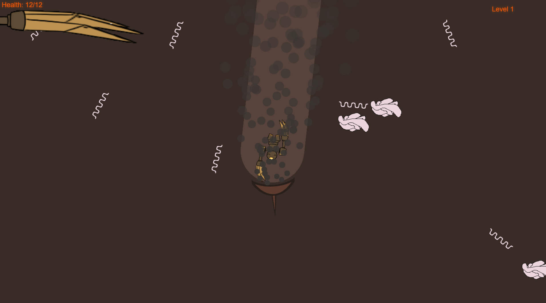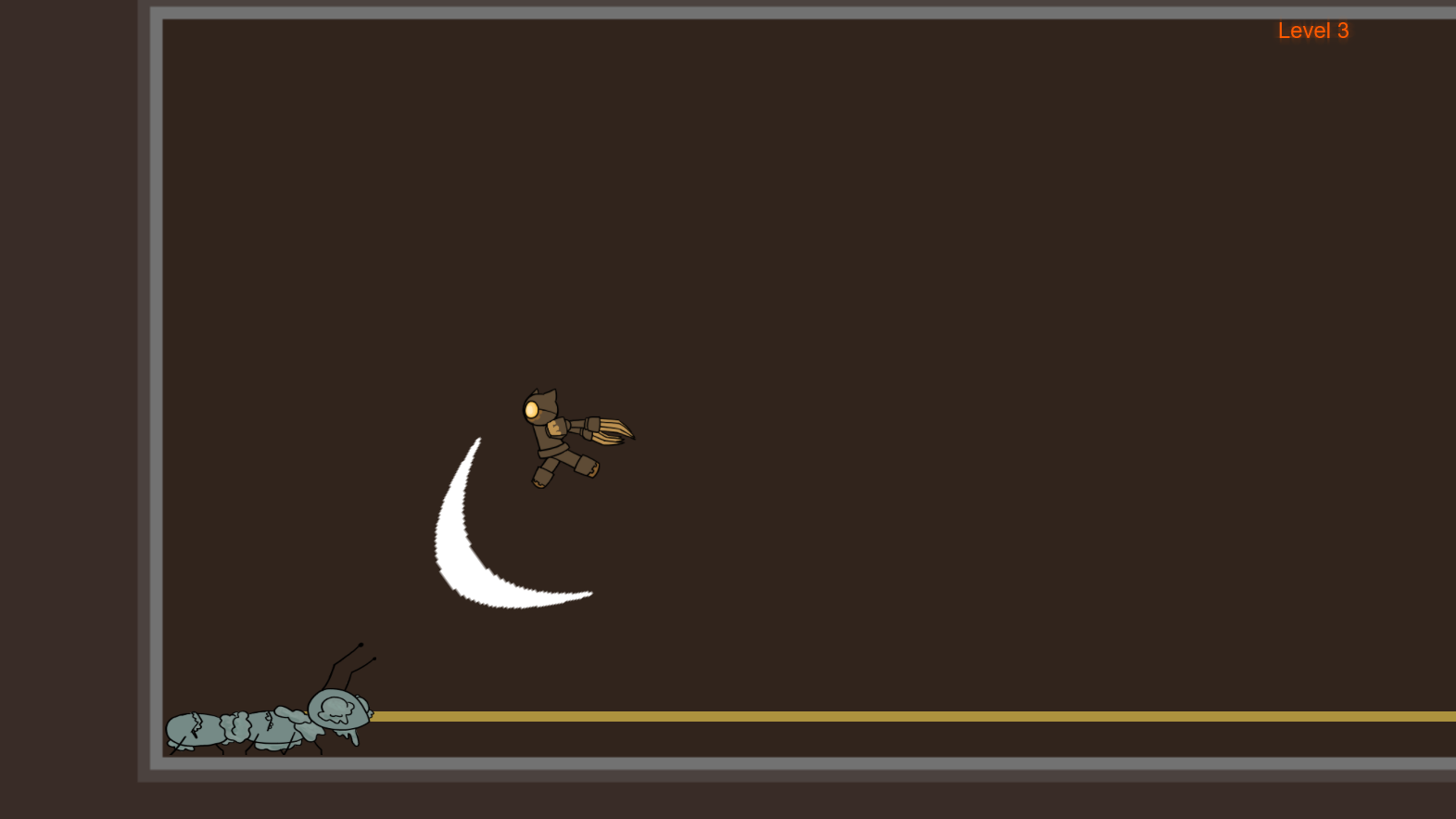 Nice game, with polished art. Loved how the claw was used to indicate health. Perhaps turn the font size up a bit, since health and level are quite hard to see right now, especially in the font that they're in. Otherwise, the flaming font looks very cool.