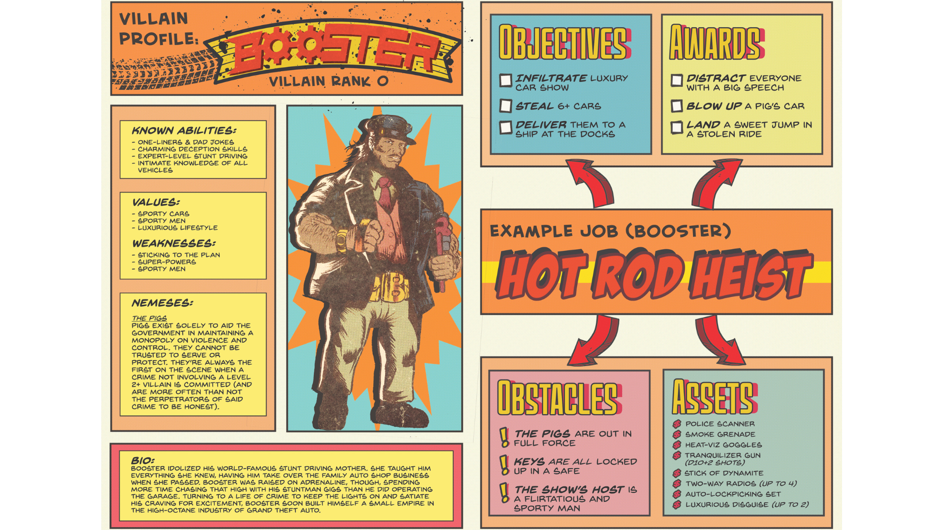 The Job: A villainous plot must be submitted to set an equipment budget and recruit the appropriate henches, which must include:
