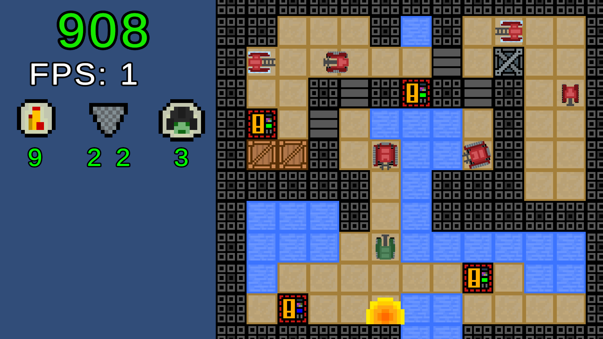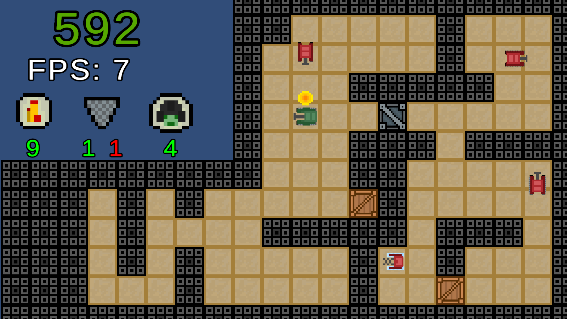 I had a tough time understanding how to play this one, I was trying to figure out how to lower my frame rate, and it took me a while to find it was the scroll wheel, but even so I'm not sure what the rest of the numbers are on the screen except for ammo. Also it seems very difficult to get to every tank with enough frames left but maybe I'm missing something. I like the idea but I think I'd need a tutorial or some more instruction to dive into this game.