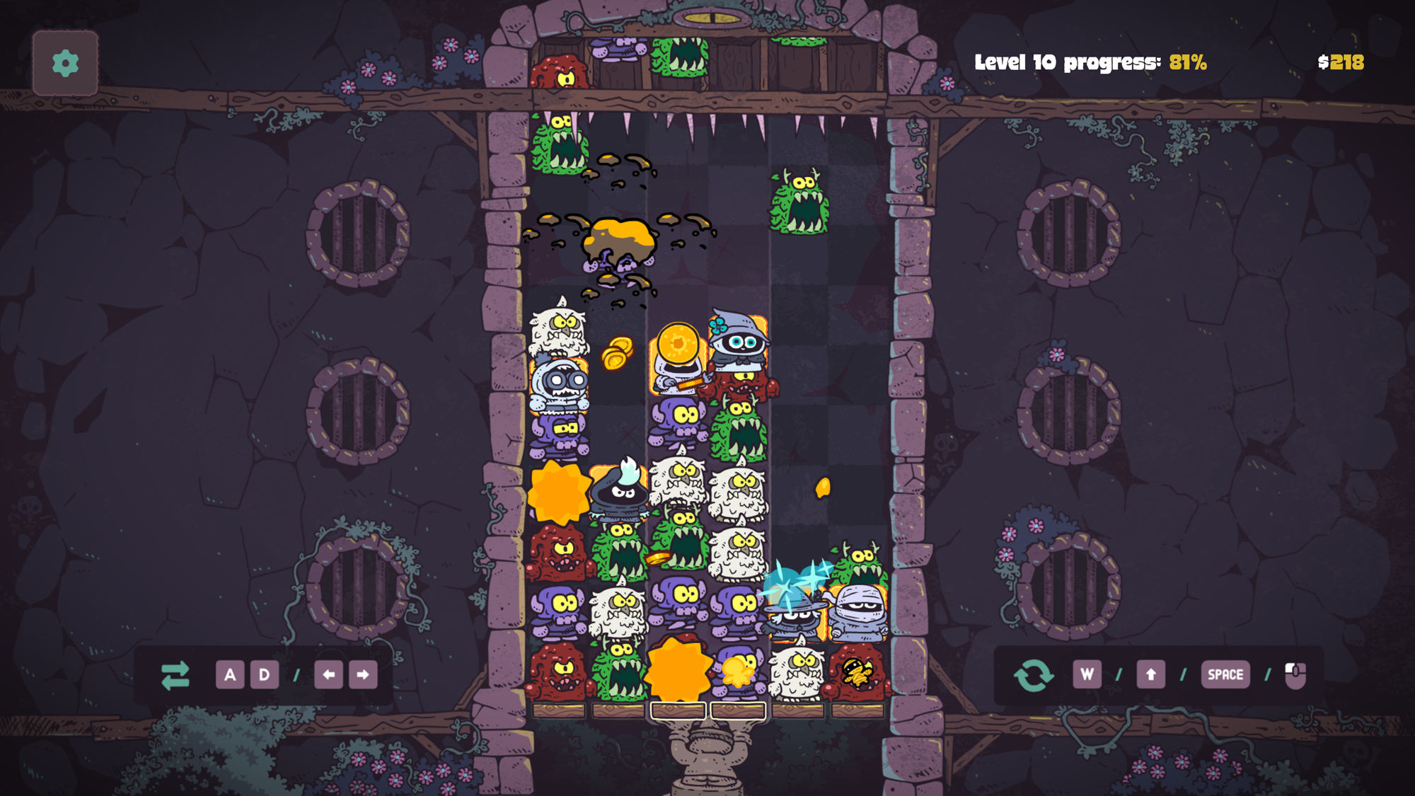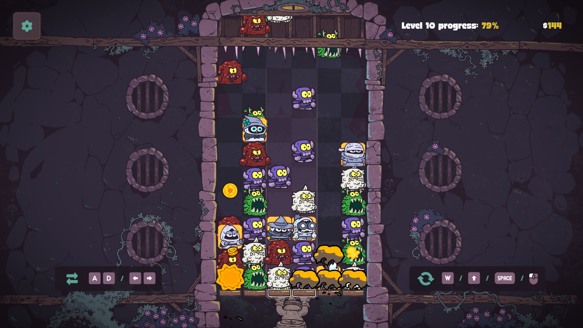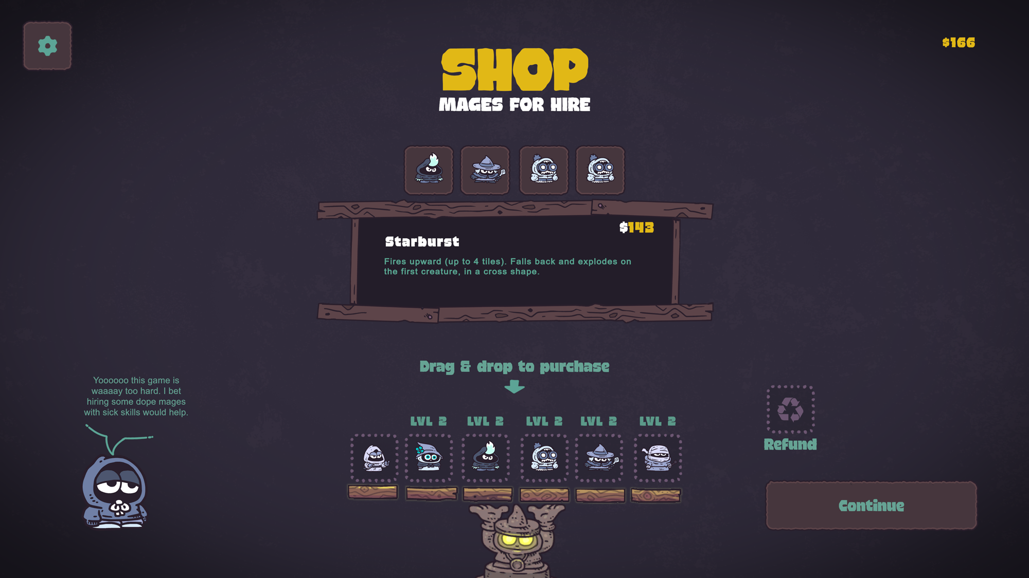 playing this was a bit of an uphill battle for me because i'm not really a yoshi enjoyer, but i did appreciate and enjoy the attention to detail and presentation of this game. I do wish that chaining or taking on more risk was rewarded by this; i felt more like i was trying to not fail at a task, rather than trying to get away with a risky gambit or tricky play, and i didn't finish the game because of that (though i did wind up hiring a cool mage, who did cool mage things. thanks cool mage)