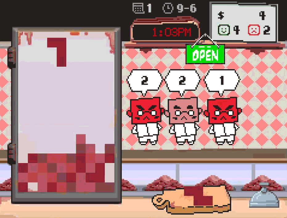 Work at a butcher shop and clear Tetris lines to deliver sausages to customers.