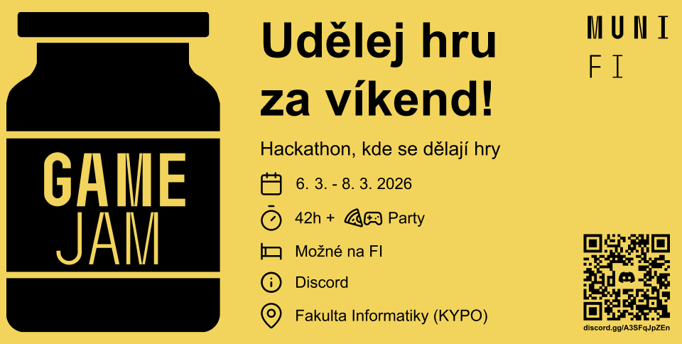 The first-ever game jam organized by students of the Faculty of Informatics at Masaryk University! A 42-hour hackathon dedicated to game development.