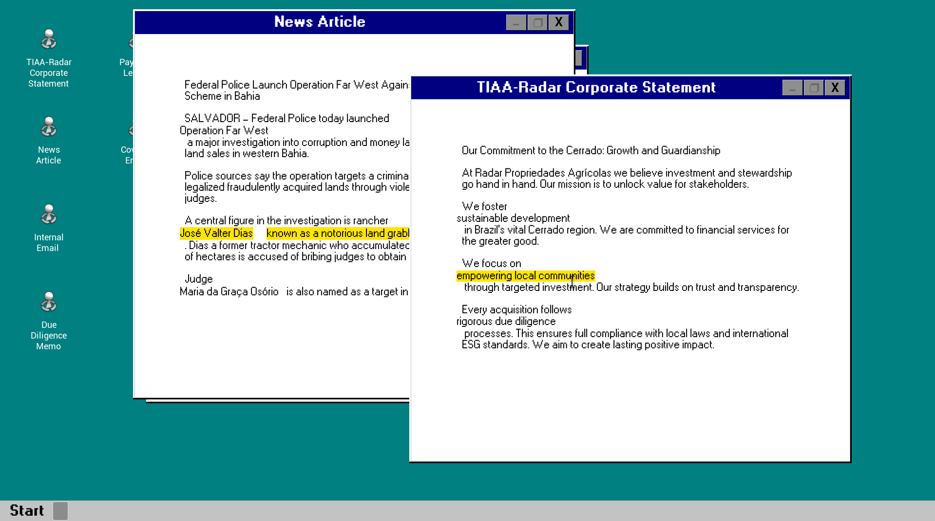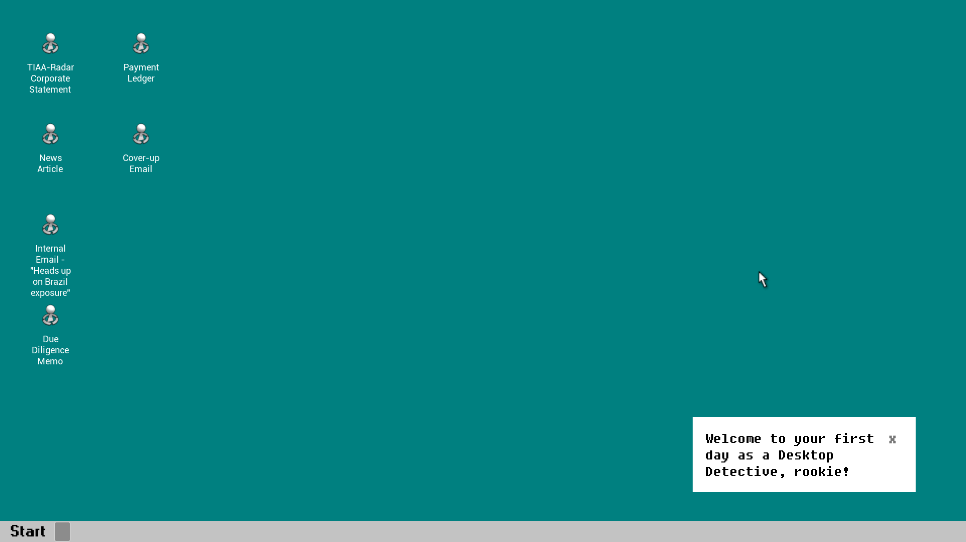 An investigative journalism game played entirely within a simulated 90s desktop pc operating system.