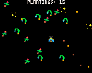 - Hey busy bee, stop impaling yourself! A fun alternate reality of Centipede/Millipede in which you are your own worst pollinator enemy. Strategy quickly became "shoot pollen only when the seeds are near the top" to avoid creating a terminal obstacle. Music was nice, if a little melancholy, but the game needed sfx for pollination/shots, and possibly a bit of buzzing from time to time, for variety and a break from the bgm. Interesting take on fragile, since you'd think a bee would love having lots of flowers, but not in this case. Appreciate the variety of flowers, since you never know what's going to grow. Bees apparently are terrible gardeners. Never really thought about it until now.