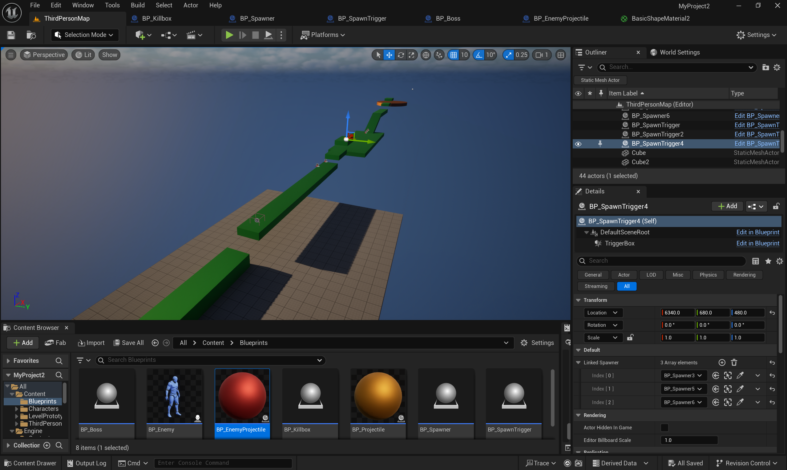 I understand the difficulty of getting side scrolling to work on Unreal engine, as I have recently done 3 side scrolling projects. 1 using the premade side scroller in 5.6- highly do NOT recommend- caused way more issues than time saved. They all proved difficult/ finicky with the camera, rotation and controls. I ended up just setting rotation of the character depending on what direction they have pressed. I'm not sure if your character or enemies are constrained to a plane, because some of the first enemies seemed to be further back and unable to kill. Another small performance booster would be to set life span of the Bullet BP on begin play. This would limit the calculation for their movement and the number of actors in the world. When stepping backwards at the beginning and being shot at the end, player control is taken, and the camera is switched.