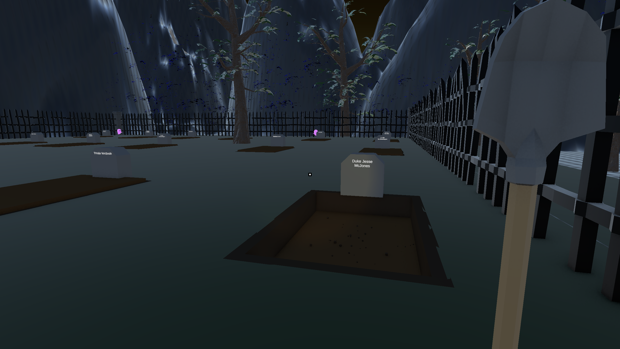Nice game! I love the music and the ghost; the idea is great! I saw the playthrough for the jam and know that he was able to pull up a list of names, and I did not see that control listed, nor did I figure it out, but I managed to beat it by digging up all the graves.
