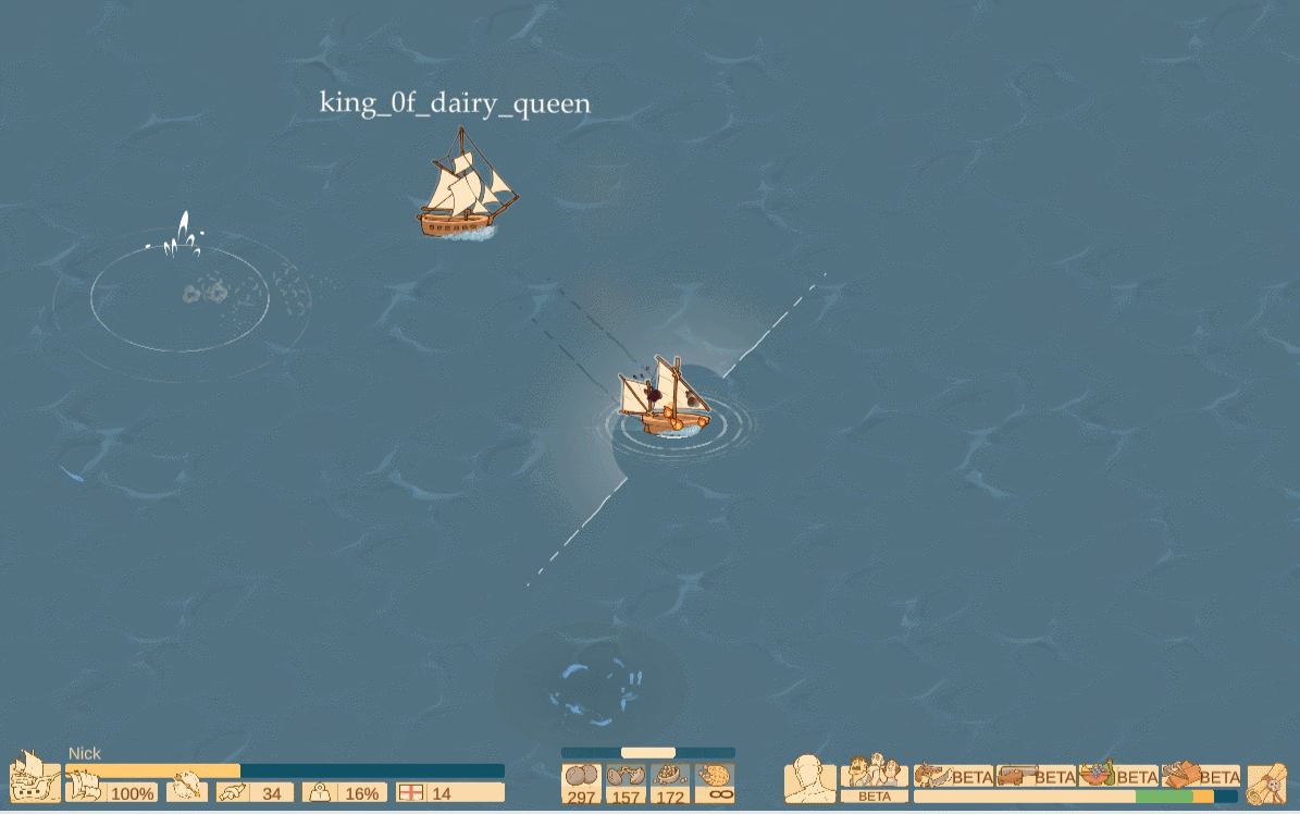 Dude, I can't believe this is a game jam game! I spent WAY too long just sailing around Tortuga. I was trying to be peaceful, do a little fishing, but the map was filled with.... PIRATES. Went 3-2 overall in battles. It was super active when I was playing, so it was super awesome.