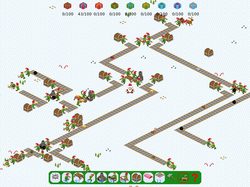 Fabriquez 100 cadeau de chaque sorte et emmenez les au traîneau du père noël. appuyer sur le point d'interrogation pour un tutoriel avancé, le jeu est assez complexe.