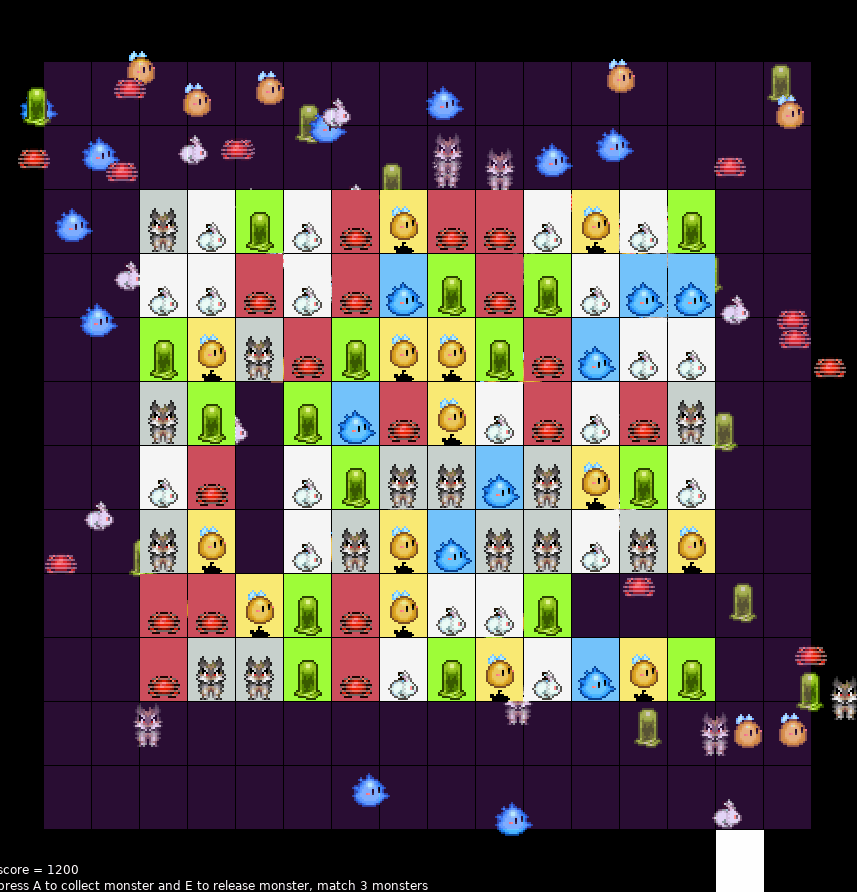 Tu pourrais rajouter la possibilité de détruire plus de 3 monstres à la fois comme ça on pourrait finir même quand ils ne sont pas en multiple de 3 et ça forcerait le joueur à faire un peu plus attention sur comme il doit jouer