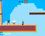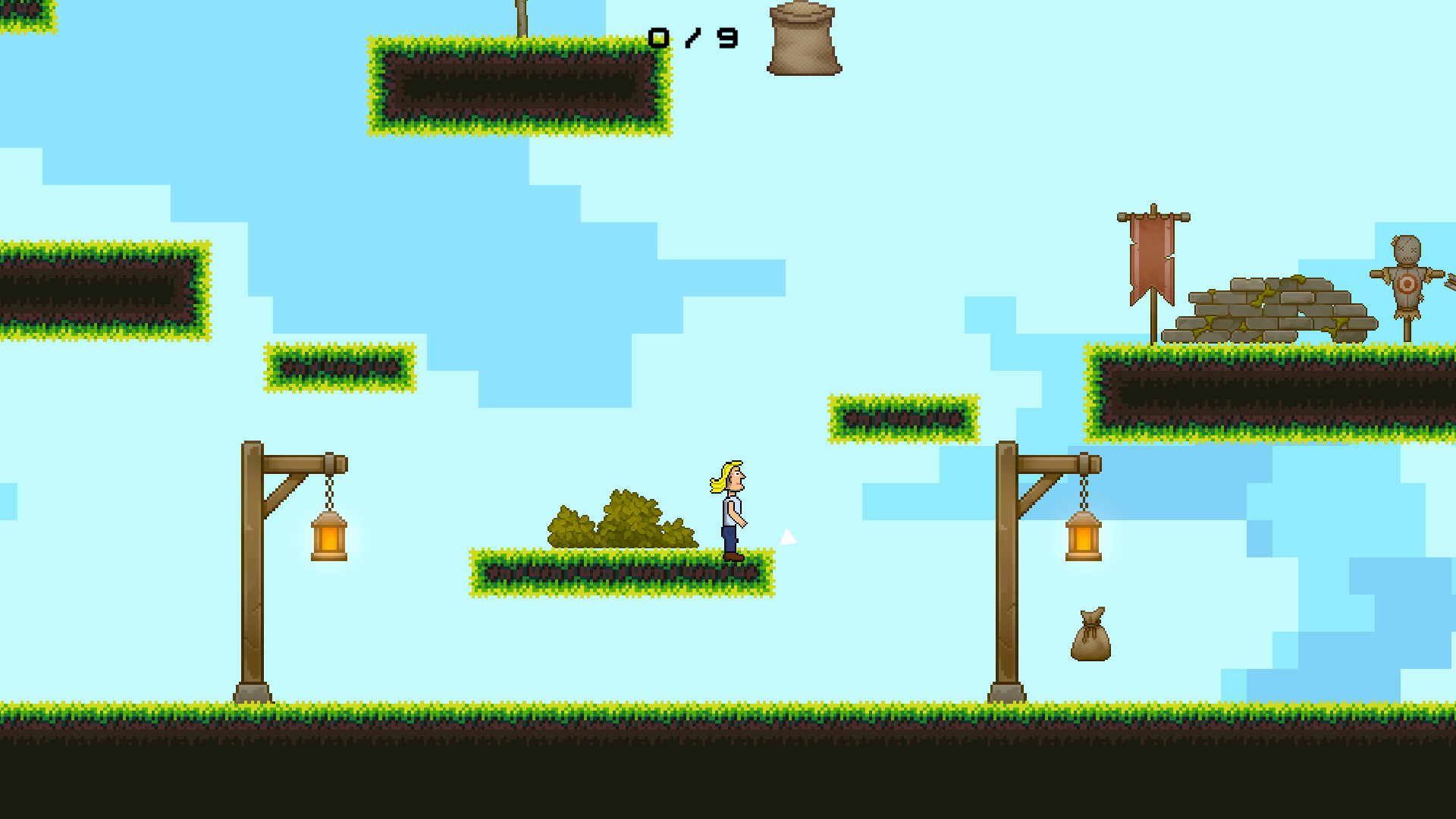 Foddian pixel platformer, where you have to deliver packages which affect your journey to houses all over the map.