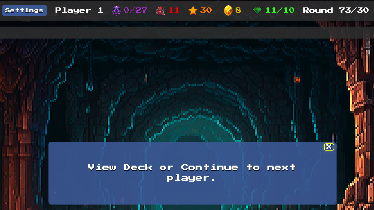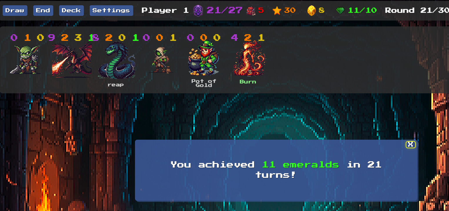 I enjoy push-your-luck boardgames and this reminds me a lot of those, so I really liked the gameplay. This probably would be a lot for the short development time we had but some monster abilities could be fun, adding an extra layer to deckbulding aside from pure stats.