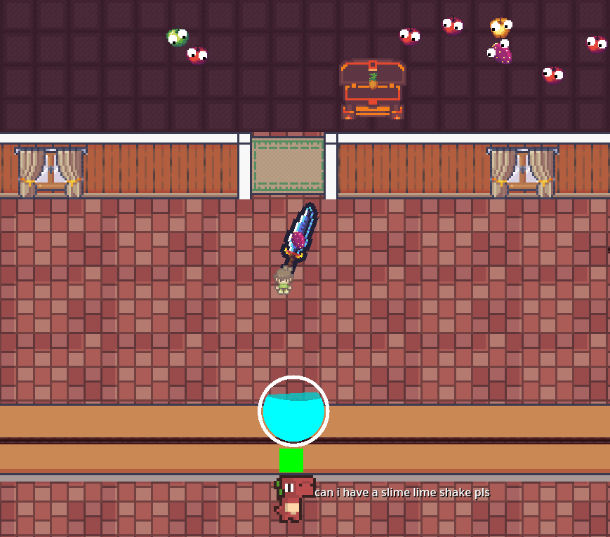 Wish I could shake the fruit off my sword, by the end of the game I was trying to dodge around fruit to find the correct color. Neat variation on overcooked/tapper games
