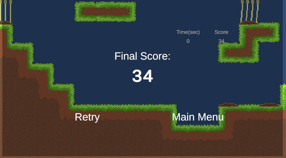 Neat and different game idea for a platformer! I was able to get a score of 25. One big feedback I would have is to increase the gravity as it feels like it takes forever for the player to fall down so I can jump again. Great job on the submission!
