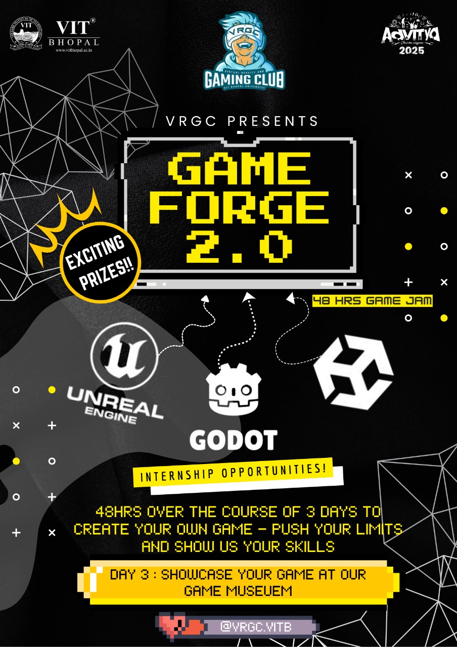 The Virtual Reality & Gaming Club (VRGC) presents Game Forge 2.0, an exciting 48-hour online game jam where creativity meets competition! Whether you're an experienced developer or just starting out, this is your chance to challenge yourself and create an amazing game!