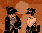 The art is so simple and yet can capture the emotions of the characters so well, not to mention the character design, the backgrounds, the story, the colors, everything just SCREAMS western. The colors especially fit so well into the western scheme, because I don't know about other people, but I immediately think of orange when it comes to the word "western," and the fact that the game was just full of that color (in variation of course) is such a clever decision that fits so well. In fact, it deserved its own sentence!