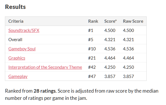For your records, I've taken a screenshot of the ratings for your game before it was disqualified:
