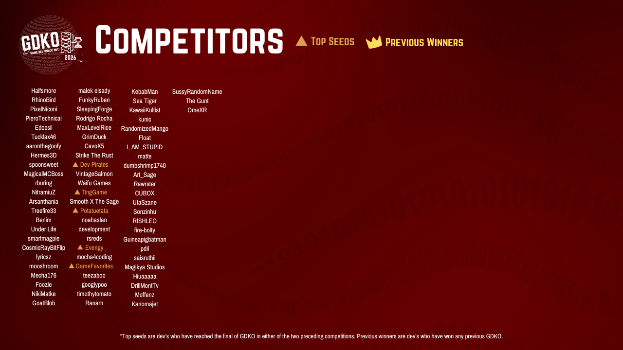 The winner of GDKO 2026 will receive a GDKO 2026 winners T-Shirt (Shipped worldwide). There will also be sponsorship prizes (tbc).